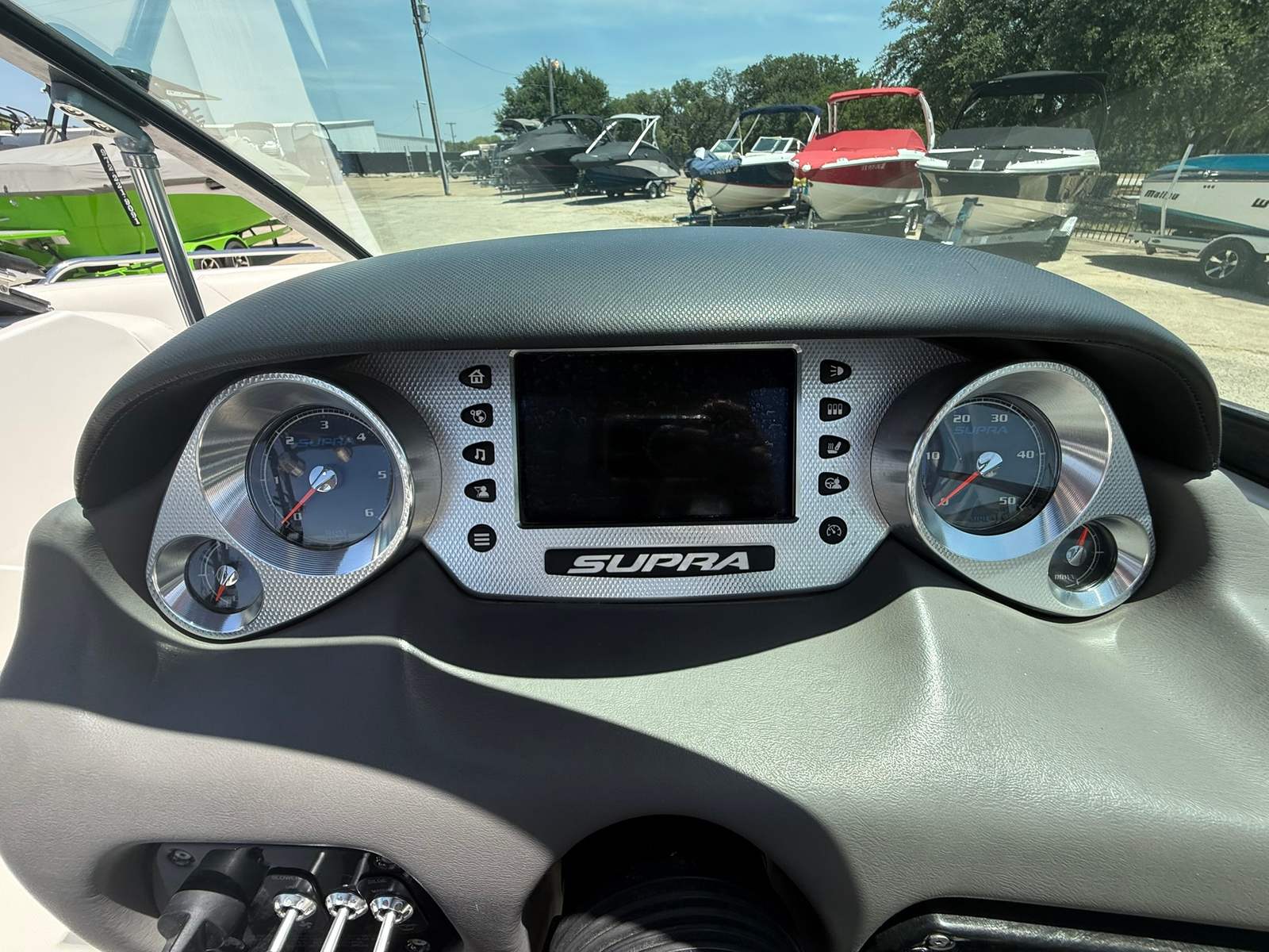 The Supra 22 SSV is engineered with water sports in mind, offering a range of features that enhance your time on the water. The spacious interior layout is designed for comfort and convenience, providing plenty of seating for your crew. The boat’s design maximizes usable space, making it easy to move around and store your gear. The hull is crafted for optimal wake creation, ensuring that skiers and wakeboarders can enjoy clean, consistent wakes every time. The intuitive helm puts all controls within easy reach, allowing the captain to focus on the fun. With its 23-foot length, the Supra 22 SSV strikes the perfect balance between maneuverability and roominess, making it ideal for both action-packed days and relaxing cruises.