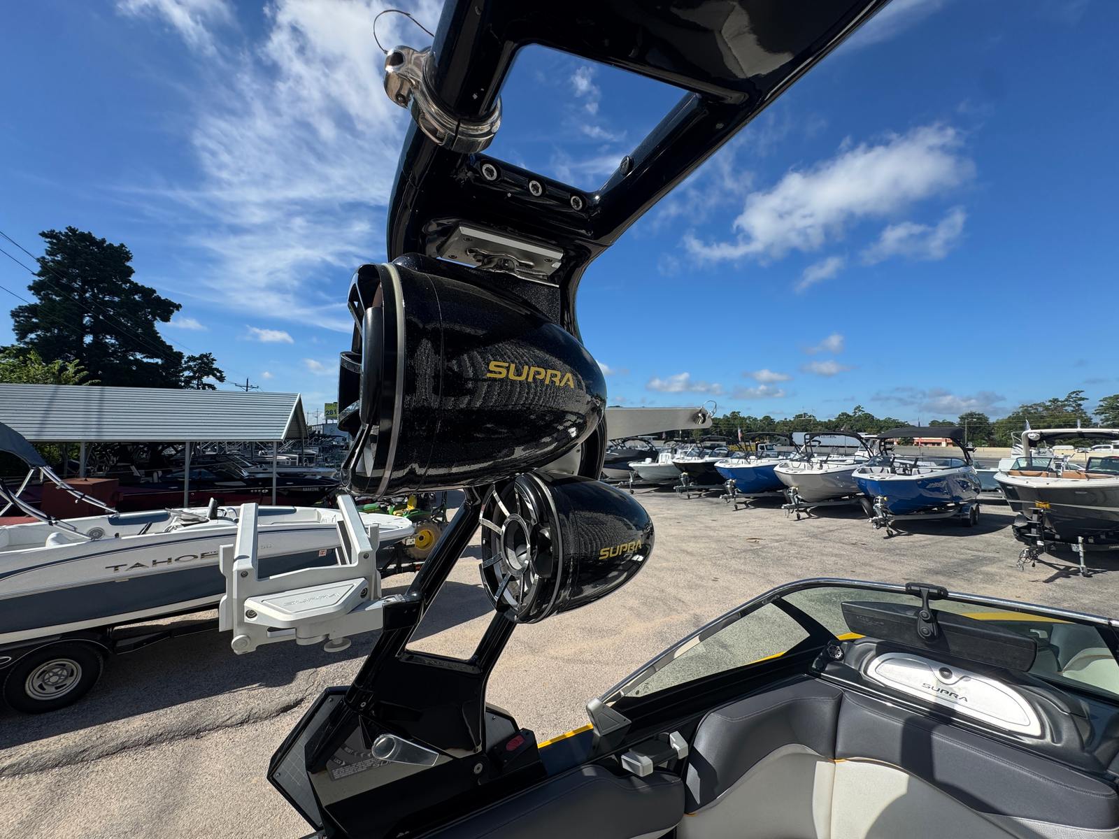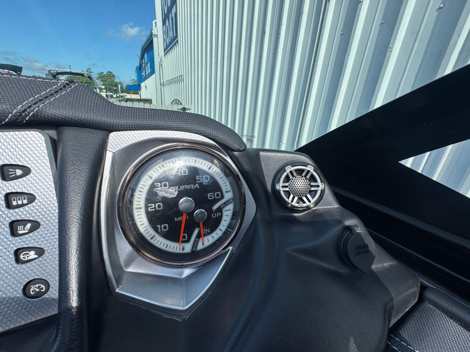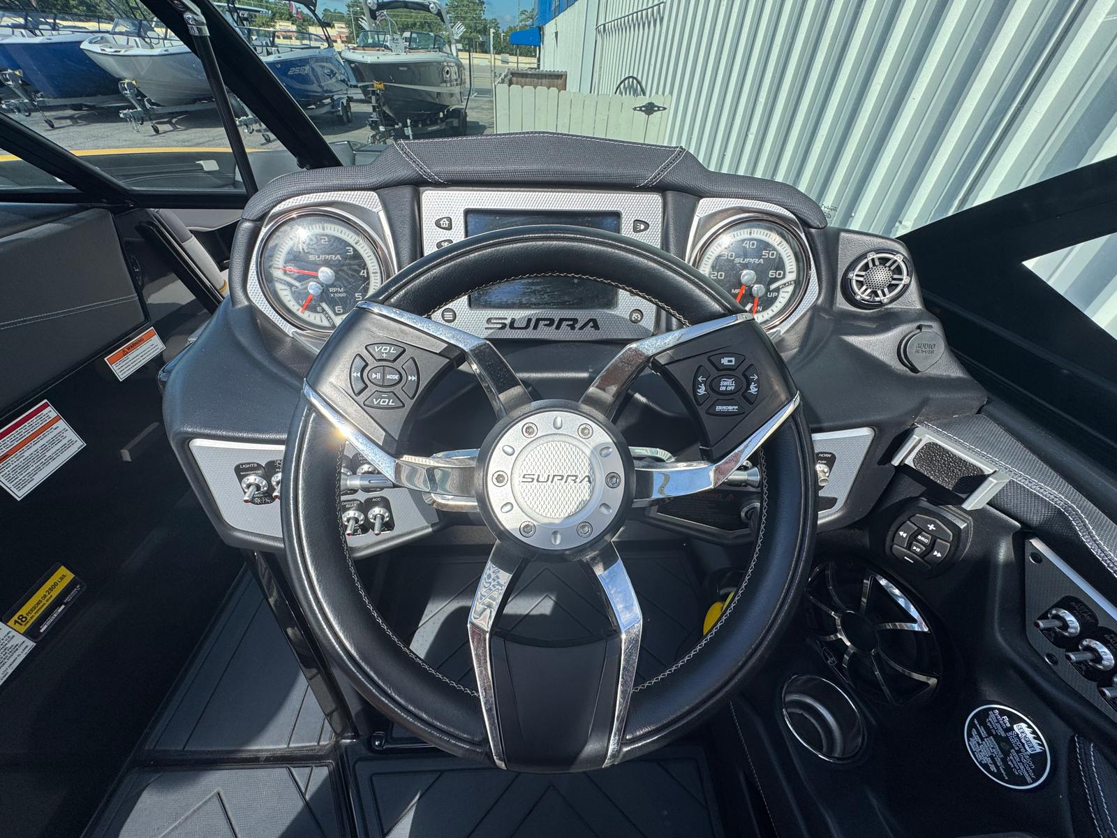 The Supra SE 550 is packed with features that cater to both serious water sports enthusiasts and those seeking relaxation. Its spacious 24.5-foot layout provides ample room for friends and family, making it ideal for social gatherings and group outings. The boat’s design maximizes both comfort and functionality, with plush seating, intuitive controls, and smart storage solutions throughout. Every detail is crafted to enhance your experience, from the ergonomic helm to the expansive swim platform that makes getting in and out of the water a breeze.