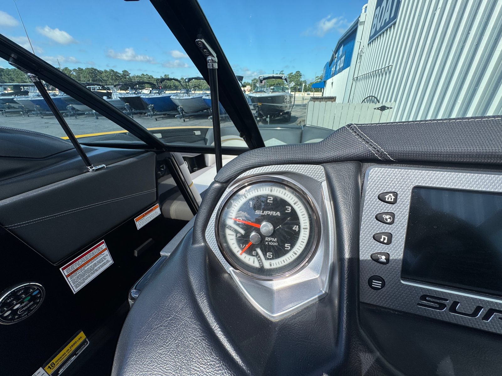 The 2017 Supra SE 550 stands out as a top-tier Ski & Wakeboard boat, boasting a commanding presence with its 24.5-foot length. Its sleek, modern design is matched by robust construction, ensuring both durability and eye-catching appeal. With only 325 engine hours, this used Supra boat for sale has been well cared for, offering you many more seasons of fun and excitement. Whether you are a seasoned wakeboarder, a family looking for weekend thrills, or someone who appreciates the finer things in boating, the Supra SE 550 is designed to impress.