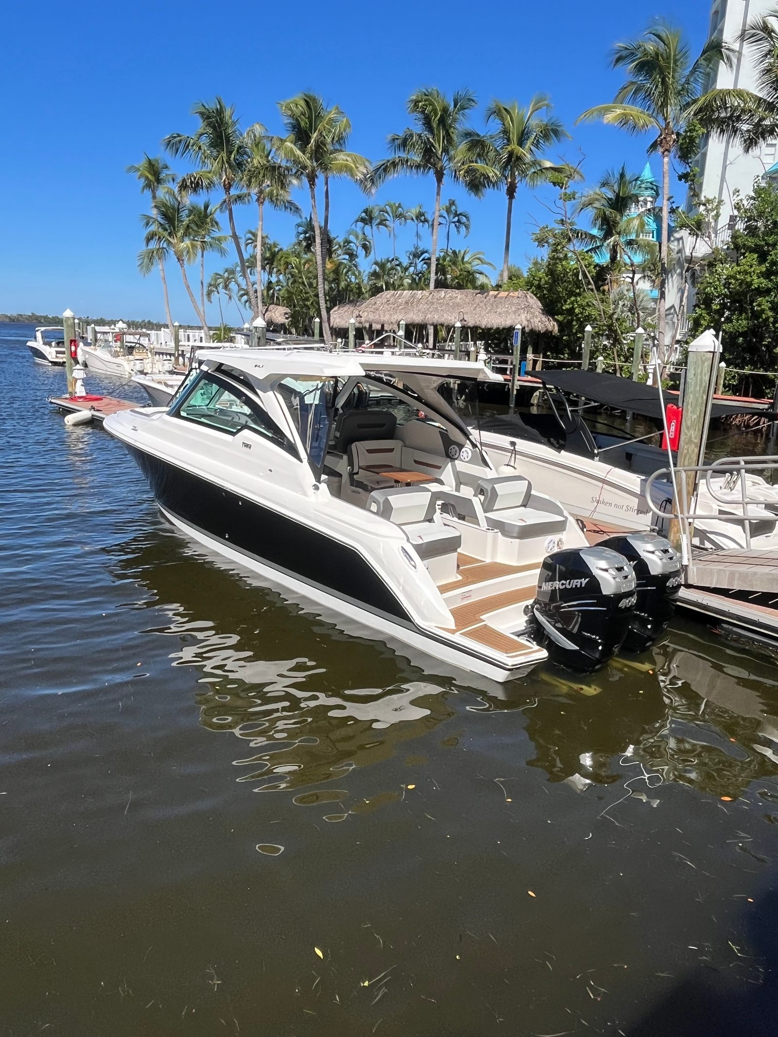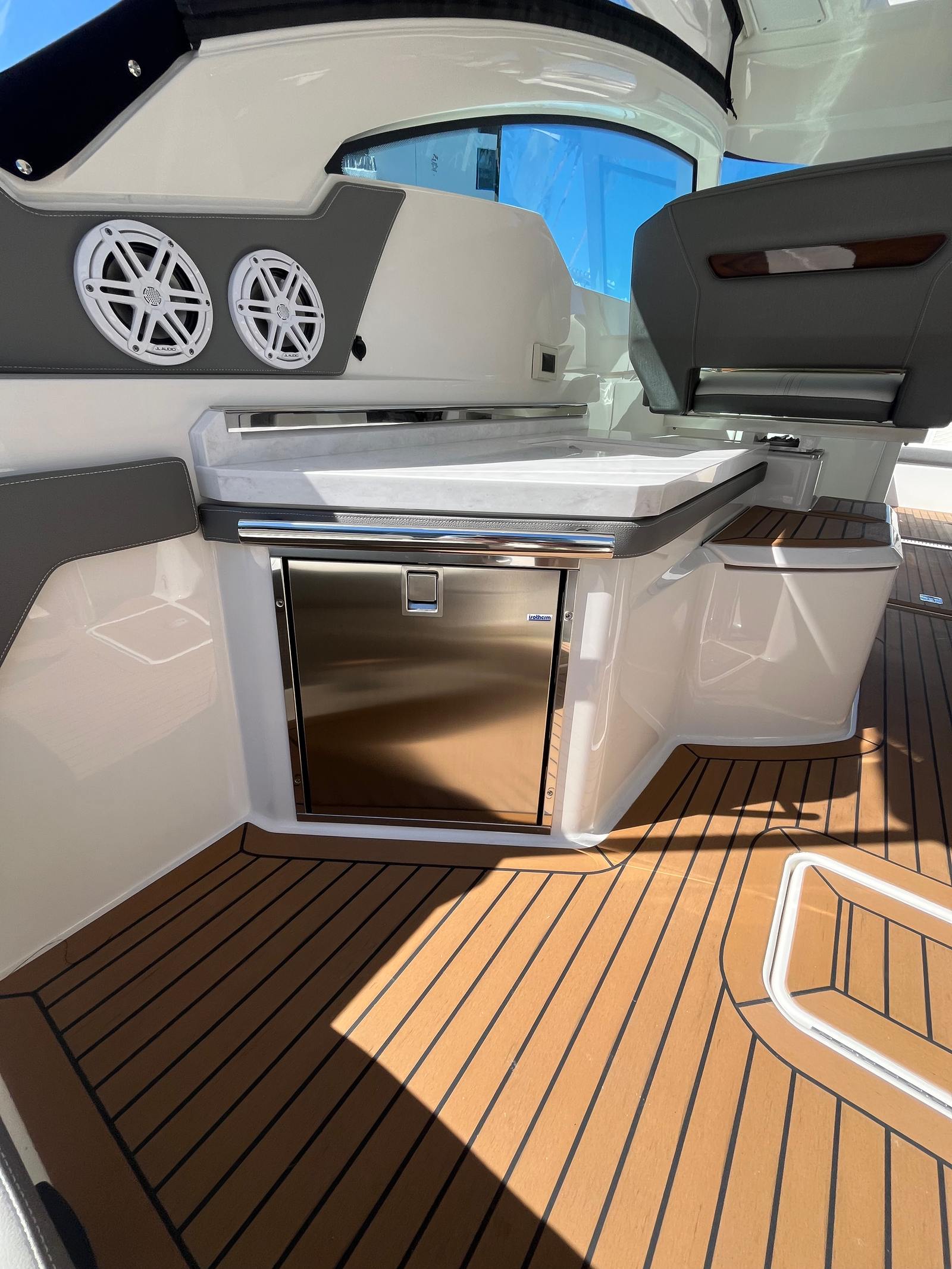 The Tiara Yachts 34 LX is packed with features that elevate your boating experience. Its spacious deck layout is designed for both relaxation and entertainment, with ample seating and open areas for socializing. The yacht’s premium materials and finishes reflect Tiara Yachts’ commitment to quality, ensuring durability and a luxurious feel throughout. The 34.75-foot length provides generous space for guests, while the thoughtful design maximizes comfort and convenience. Whether you are hosting a sunset cocktail party or enjoying a quiet afternoon on the water, this yacht boat for sale delivers the perfect setting.