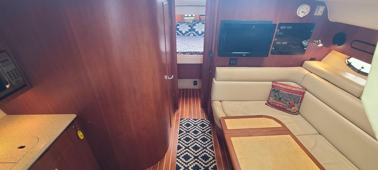 Owning this Tiara Yachts 3800 opens the door to a world of fun and relaxation. Imagine sun-soaked afternoons lounging on deck, refreshing swims in crystal-clear waters, and evenings spent entertaining friends and family in style. The yacht’s spacious design ensures everyone on board can find their perfect spot to unwind, whether it’s basking in the sun, enjoying a meal, or simply taking in the sights and sounds of the sea. The powerful engines make it easy to reach your favorite destinations quickly, so you can spend more time enjoying the journey and less time worrying about logistics.