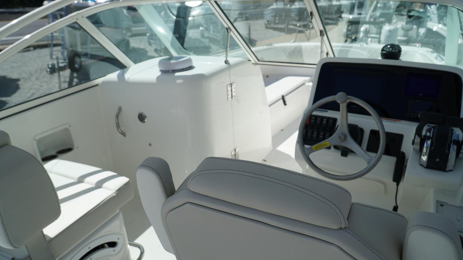 The 2025 World Cat 230 DC comes equipped with a host of special features designed to enhance your time on the water. The 230DC/SD Hardtop Ski Tow adds versatility for water sports enthusiasts, making it easy to tow skiers, wakeboarders, or tubers. The Edson Wheel, measuring 14.5 inches with a satin finish, power knob, and nut, offers precise control and a touch of luxury at the helm. The stereo upgrade ensures that your favorite music accompanies every adventure, creating the perfect soundtrack for cruising, relaxing, or entertaining guests. The Arniston Gray full hull and matching underside hardtop not only provide a striking visual statement but also offer added durability and protection from the elements. Heavy-duty stainless steel lifting eyes are included for secure mooring and transport, reflecting World Cat’s commitment to quality and safety.