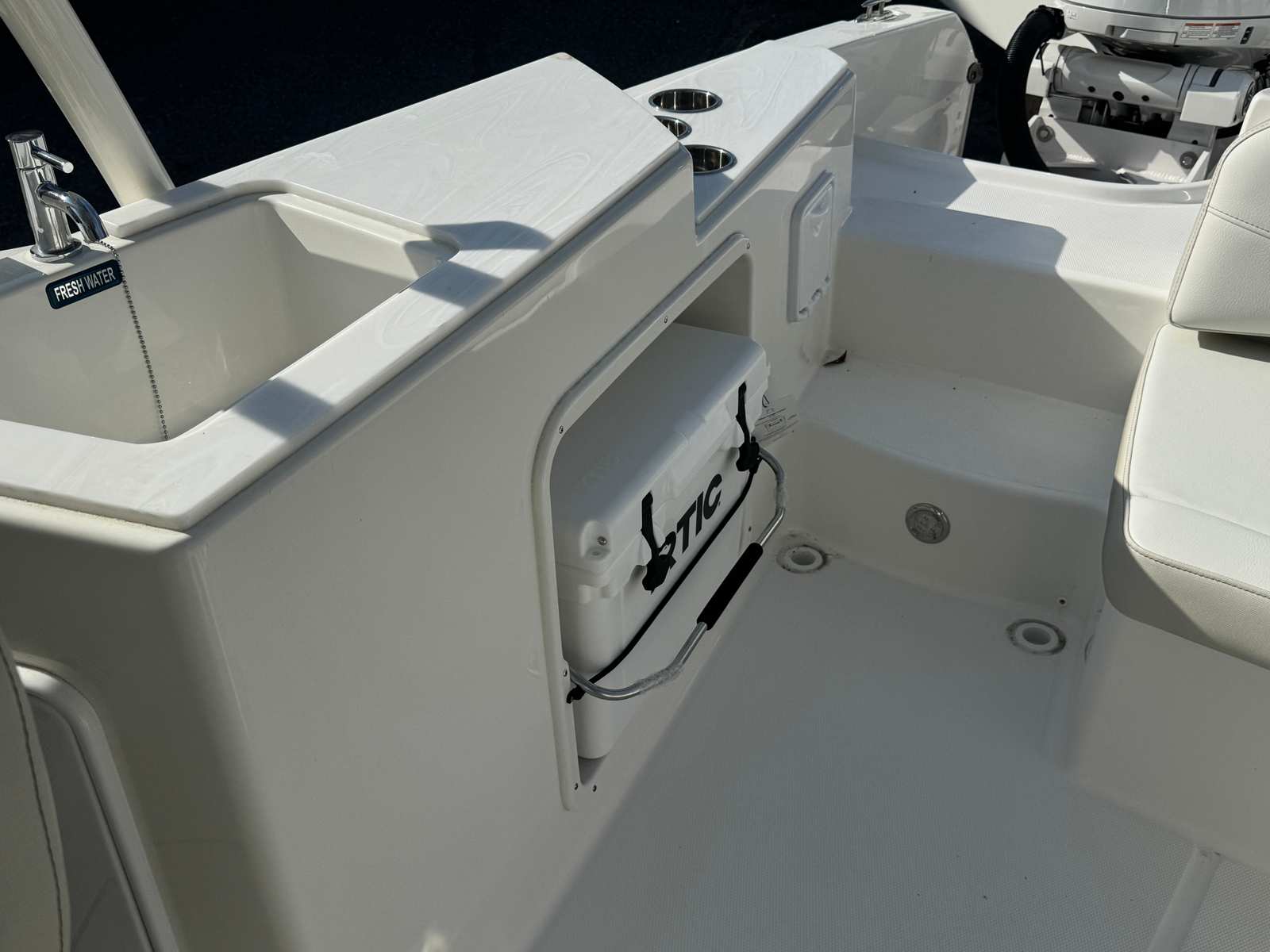 The 2026 World Cat 230 SD Dual Console is a striking vessel, measuring just over 22.5 feet in length. Its sleek Arniston Grey full hull and matching hardtop underside color create a modern, sophisticated look that turns heads at the marina and on the open water. Built with World Cat’s renowned attention to detail and quality, this boat offers a spacious layout that maximizes comfort and usability for all onboard. The dual console configuration provides flexibility for both leisure and activity, making it an ideal choice for a wide range of boating adventures.