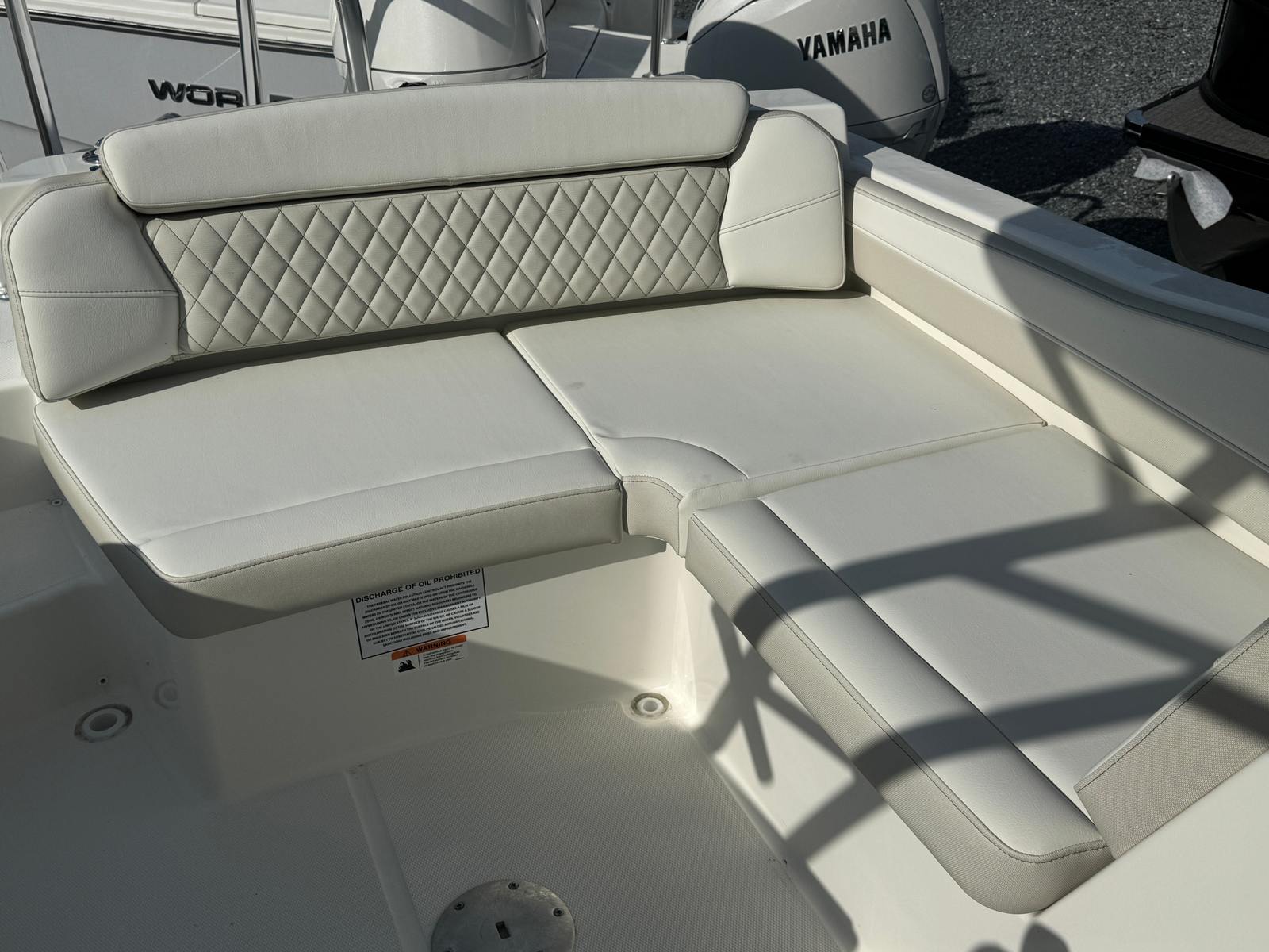 The World Cat 230 SD is designed with practicality in mind, making ownership easy and enjoyable. The dual console configuration offers flexible storage options for gear, water toys, and personal items, keeping the deck organized and clutter-free. Integrated steering and the powerful Yamaha engine make docking and maneuvering straightforward, even for novice boaters.Fuel efficiency is enhanced by World Cat’s advanced hull design, allowing you to spend more time on the water and less time refueling. The quick release fender holders streamline the docking process, saving time and effort when arriving at marinas or tying up at your favorite waterfront restaurant. The removable L-lounge table adds convenience for picnics, snacks, or card games, adapting to your needs throughout the day.