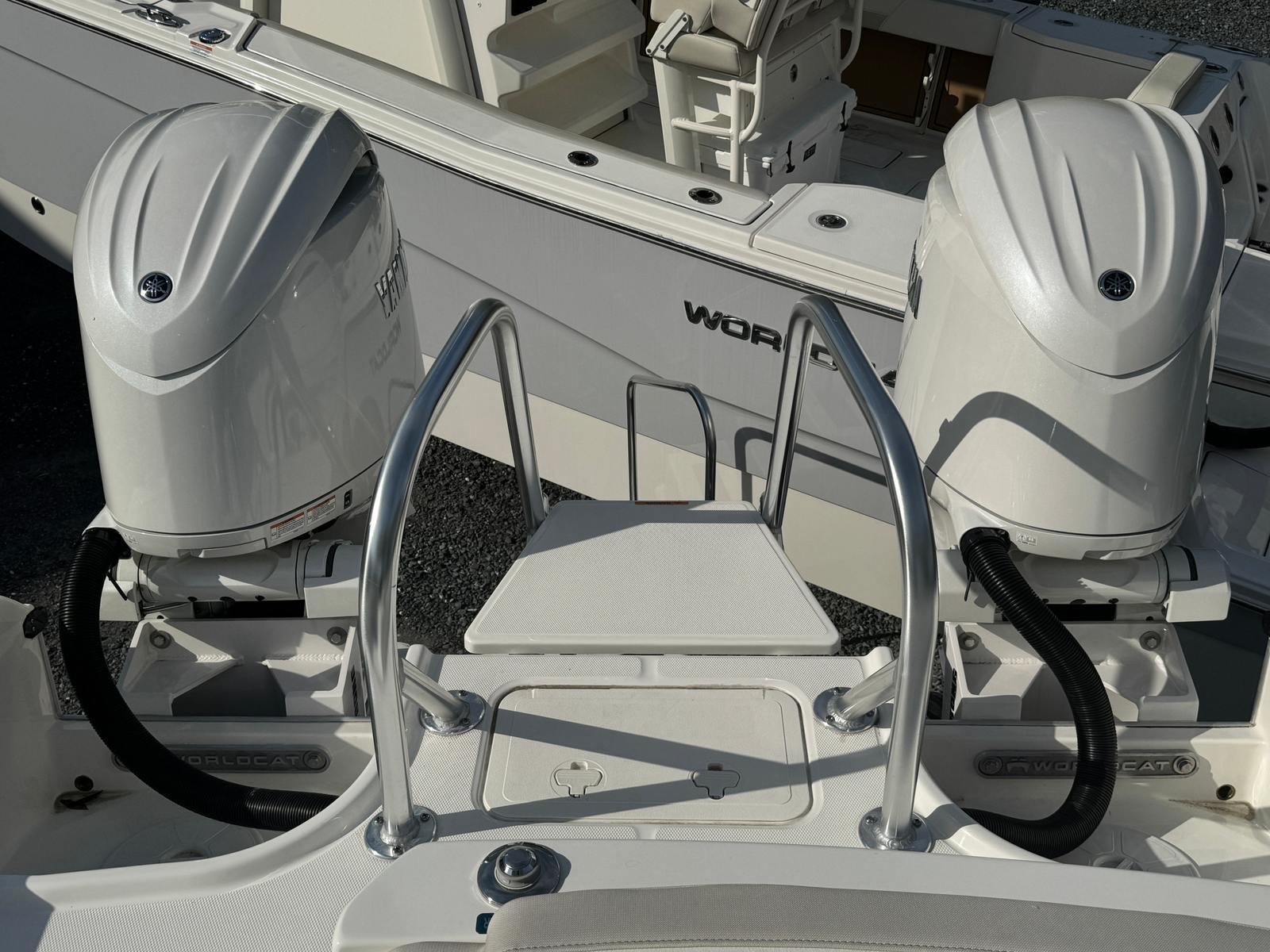 At the heart of the World Cat 230 SD is a powerful Yamaha T/F150XSA2 engine, finished in elegant white and equipped with EX Controls and integrated steering. With a combined 300 horsepower, this Dual Console boat delivers impressive acceleration, smooth handling, and reliable performance in various water conditions. Whether you’re cruising along the coastline, towing water toys, or heading out for a day of fishing, the World Cat 230 SD’s engine ensures you have the power and control needed for a safe and exhilarating ride. The integrated steering system enhances maneuverability, making docking and navigating tight spaces effortless.