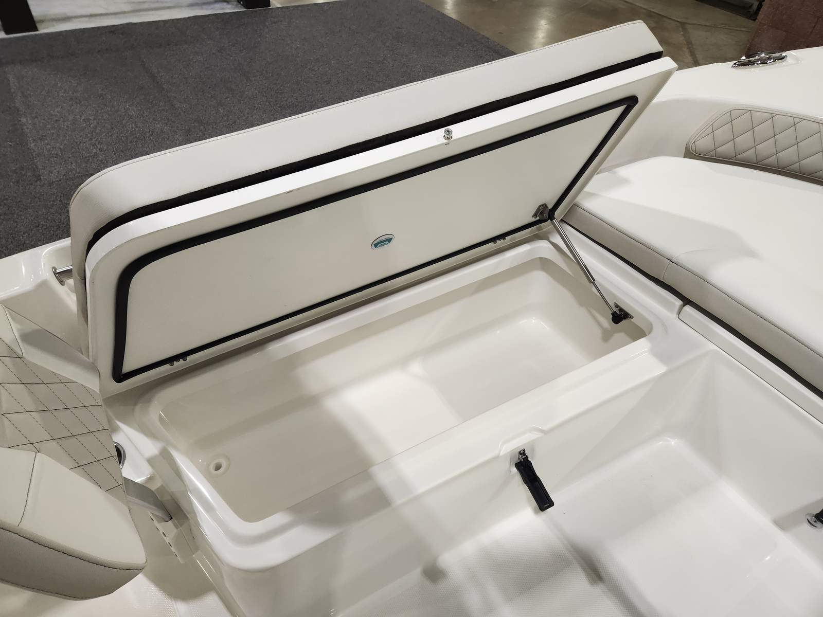 Under the hood, the World Cat 235 CC is powered by two Yamaha F150XSA2 engines, each boasting 150 horsepower for a combined total of 300 horsepower. These engines are renowned for their reliability and efficiency, ensuring smooth and powerful rides every time you hit the water. The integrated steering system, featuring Yamaha’s HelmMaster Integrated DES Steering, provides precise control and effortless maneuverability, making docking and navigating tight spaces a breeze. Whether you’re cruising at high speeds or idling through a marina, the World Cat 235 CC delivers responsive handling and impressive acceleration.