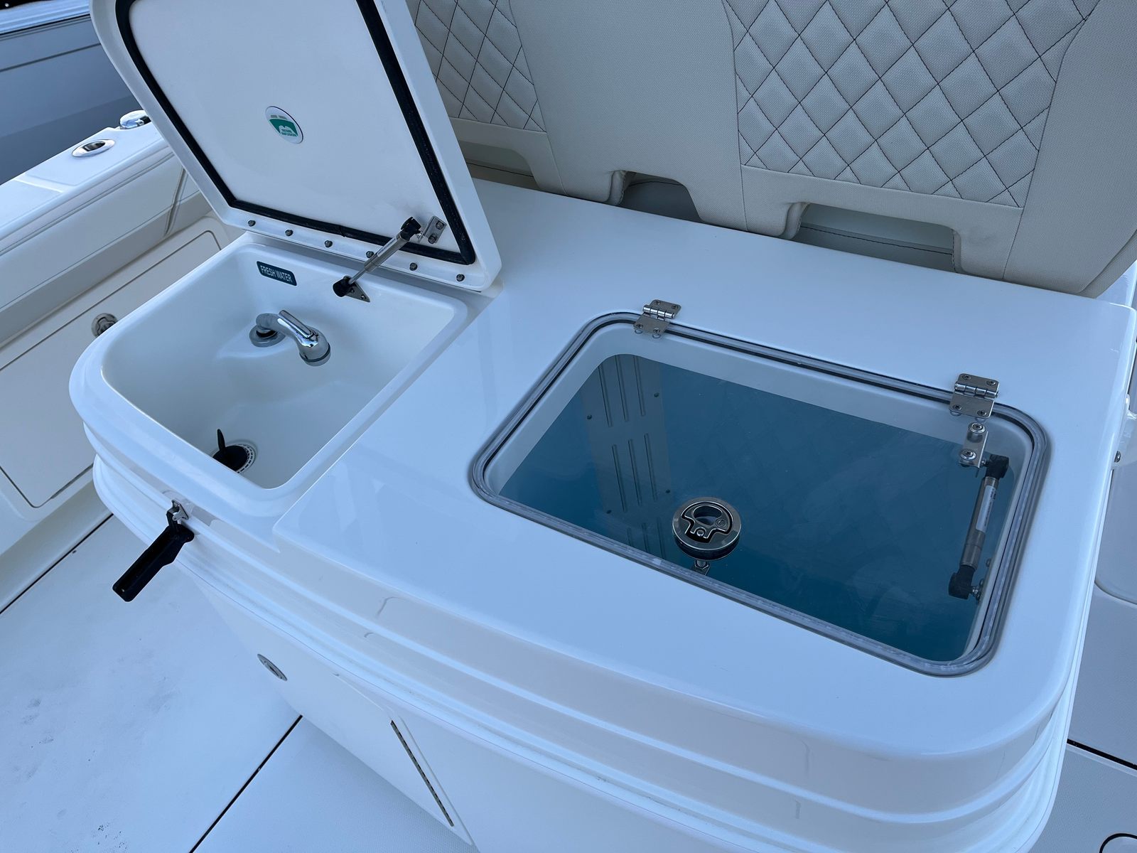 At the heart of the World Cat 325 CC is a powerhouse propulsion system featuring twin Mercury 425hp V10 Verado Cold Fusion White engines. With a combined 850 horsepower, this center console boat delivers exhilarating speed, impressive acceleration, and smooth handling in a variety of sea conditions. The advanced electric steering system, complete with a joystick, offers precise control and effortless maneuverability, whether you are docking in tight spaces or navigating open waters. The robust engine setup ensures that you have the power and reliability needed for offshore excursions, long-distance cruising, or quick trips to your favorite fishing spots.