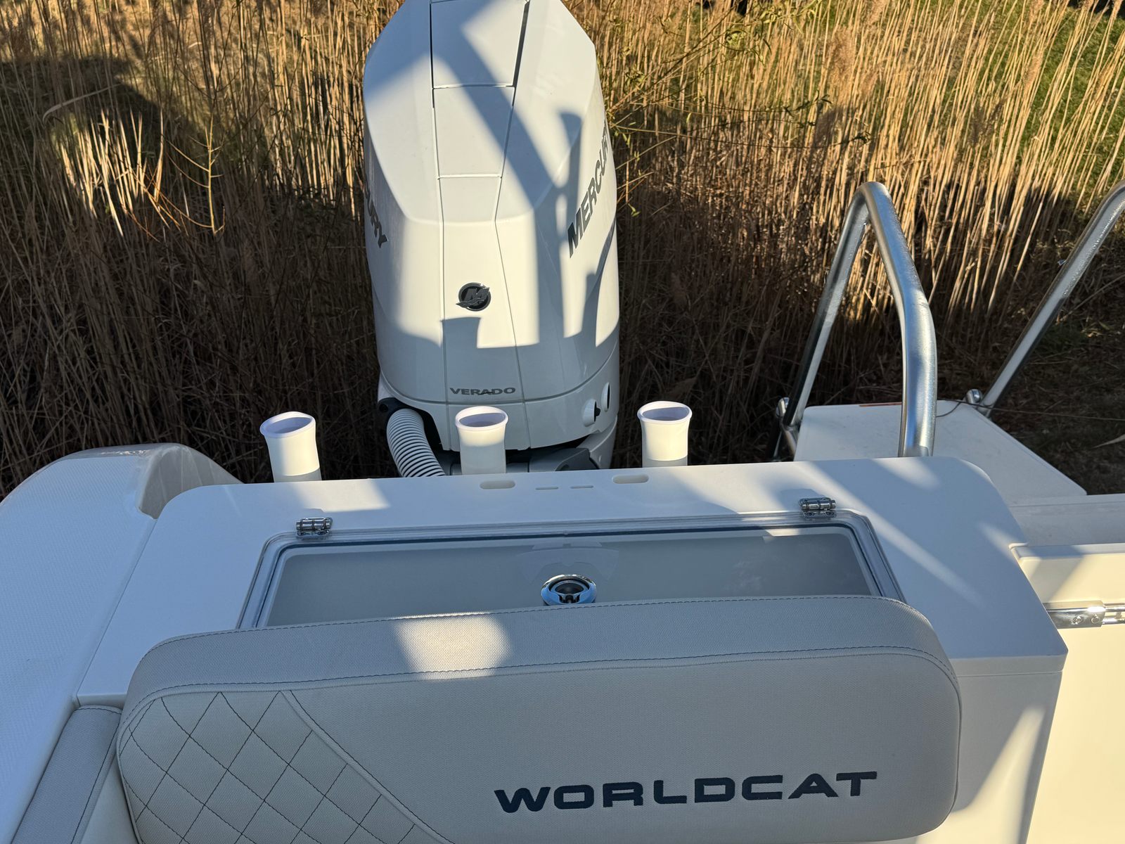 The World Cat 325 CC is as practical as it is fun. Its center console design maximizes deck space and storage, making it easy to stow gear, coolers, and water toys for a full day of activities. The joystick-controlled electric steering simplifies docking and close-quarters maneuvering, reducing stress and making it accessible for boaters of all experience levels. The heavy-duty lifting eye provides peace of mind when hauling or storing your boat, while the durable construction ensures longevity and low maintenance.Fuel efficiency is another key advantage, thanks to the advanced Mercury Verado engines, allowing you to spend more time on the water and less time at the fuel dock. The collapsible outriggers are easy to deploy and stow, making the transition from cruising to fishing seamless and hassle-free.