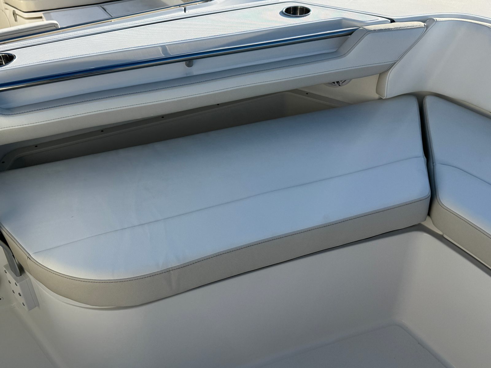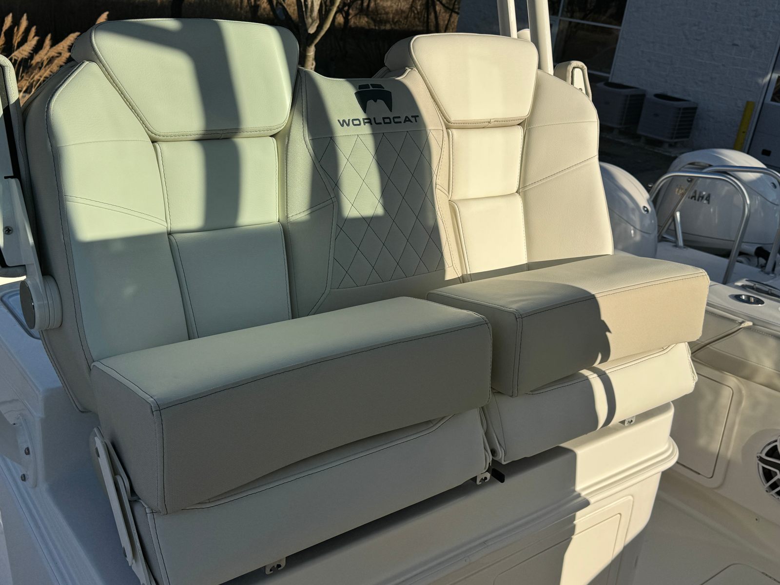 Owning a World Cat 325 CC means embracing a lifestyle of adventure, relaxation, and social connection. The spacious center console layout provides ample room for family and friends to move about comfortably, whether you are casting lines, sunbathing, or enjoying a picnic on deck. The boat's stable catamaran hull design offers a smooth, dry ride, minimizing spray and motion for a more enjoyable experience, even in choppy conditions.The upgraded sound system transforms every outing into a floating party, while the LED underwater lights set the mood for evening gatherings or romantic sunset cruises. The ergonomic helm and anti-fatigue mat ensure that captains can stay comfortable and alert, even during long journeys. With its striking Coastal Blue hull and stylish accents, the 325 CC is sure to impress guests and fellow boaters alike.