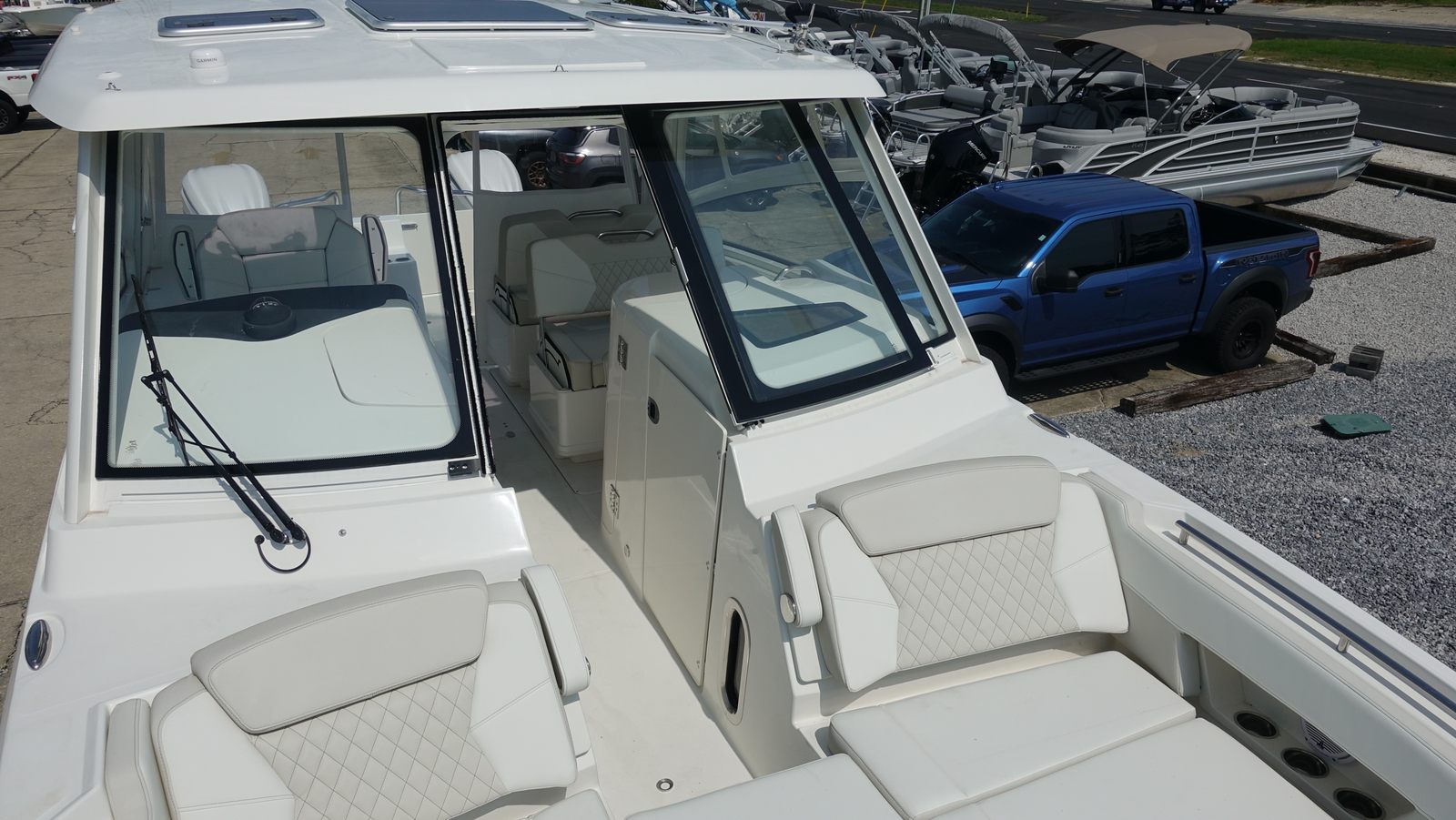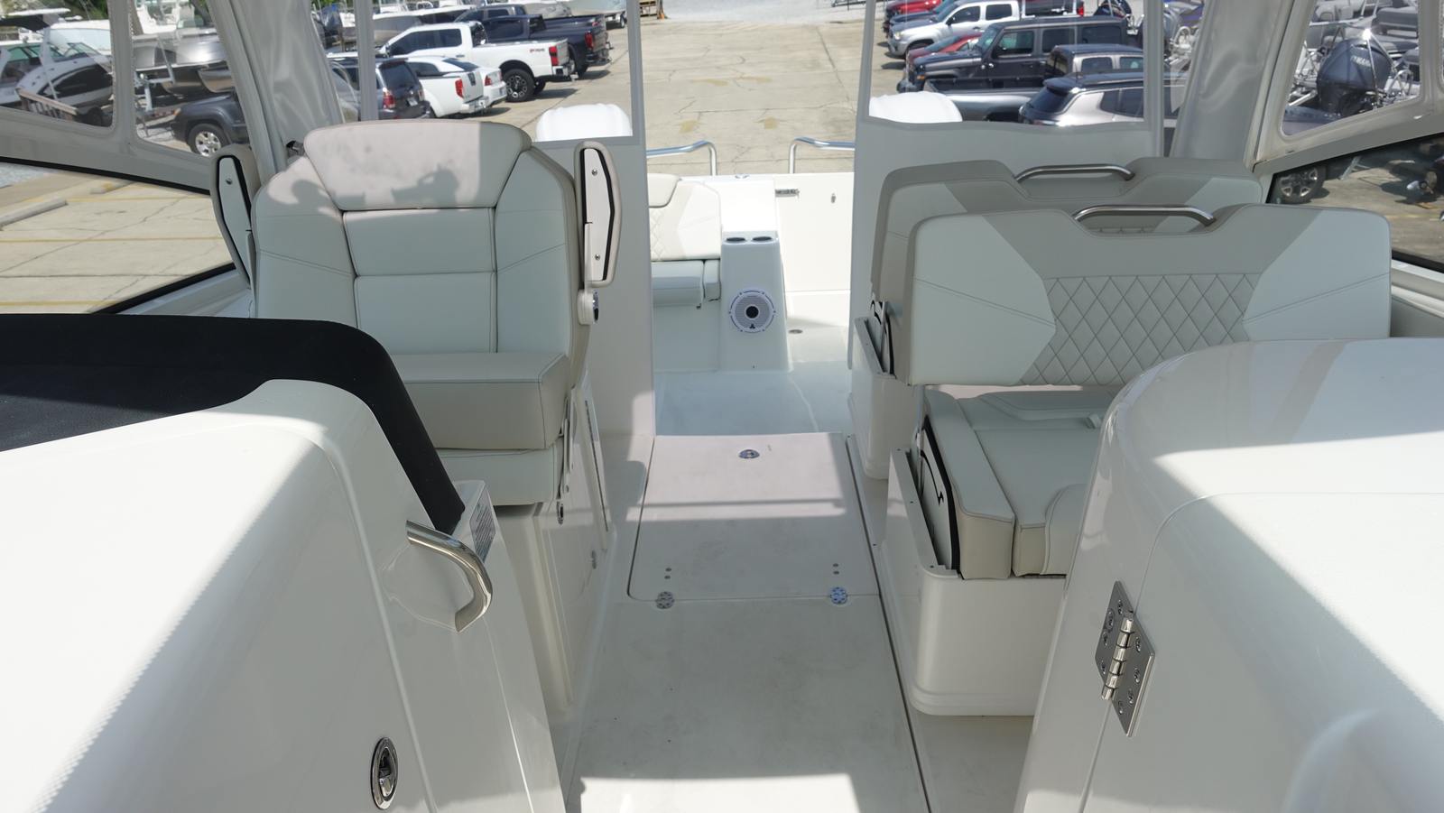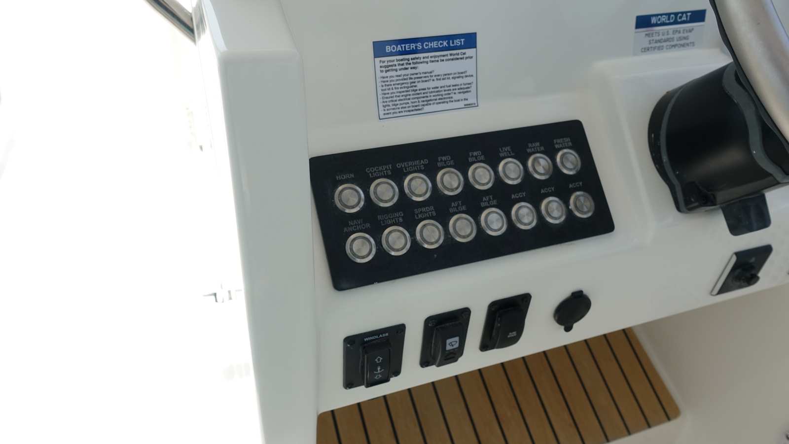 Owning the World Cat 325 DC means embracing a lifestyle of fun, relaxation, and adventure. The spacious Dual Console layout encourages socializing, with ample seating for friends and family to gather and enjoy the ride. The boat’s thoughtful design ensures everyone has a comfortable place to sit, whether you are sunbathing in the bow, enjoying the shade in the cockpit, or taking in the views from the helm.The upgraded stereo system sets the mood for any occasion, from lively parties to peaceful sunset cruises. The advanced shade solutions, including the SureShade electric retractable hardtop and forward bow shade, provide relief from the sun, making long days on the water more enjoyable. With the overnight package and generator, you can extend your adventures and experience the freedom of spending nights on the water, surrounded by nature and the soothing sounds of the sea.