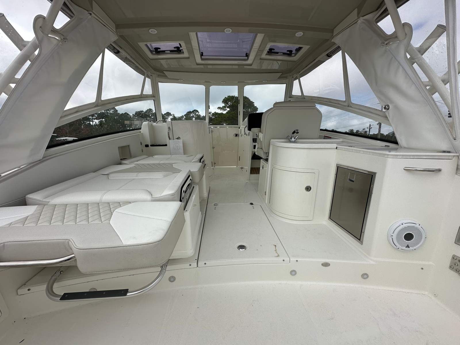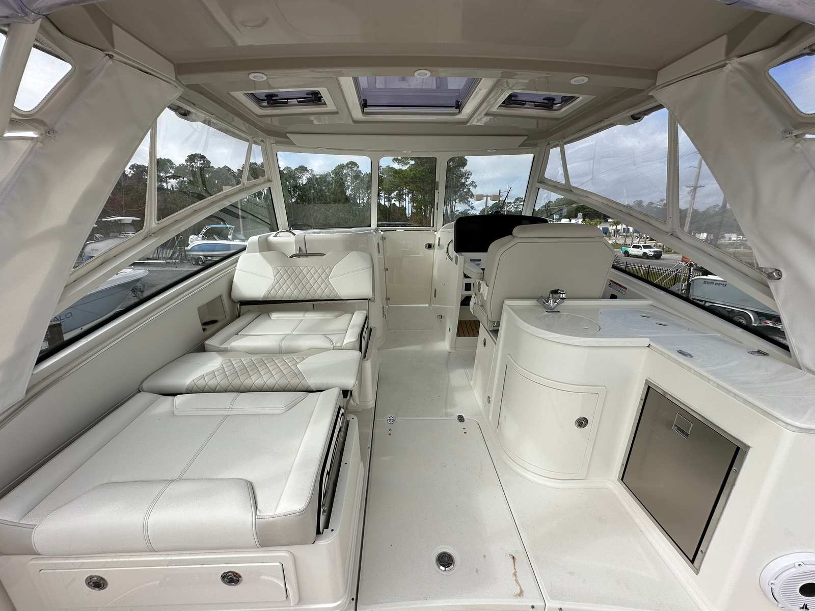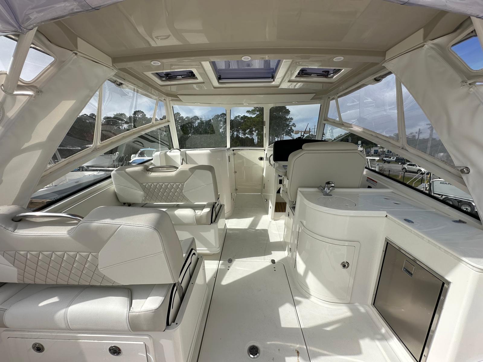 Owning the World Cat 325 DC means embracing a lifestyle of fun, relaxation, and adventure. The spacious Dual Console layout encourages socializing, with ample seating for friends and family to gather and enjoy the ride. The boat’s thoughtful design ensures everyone has a comfortable place to sit, whether you are sunbathing in the bow, enjoying the shade in the cockpit, or taking in the views from the helm.The upgraded stereo system sets the mood for any occasion, from lively parties to peaceful sunset cruises. The advanced shade solutions, including the SureShade electric retractable hardtop and forward bow shade, provide relief from the sun, making long days on the water more enjoyable. With the overnight package and generator, you can extend your adventures and experience the freedom of spending nights on the water, surrounded by nature and the soothing sounds of the sea.