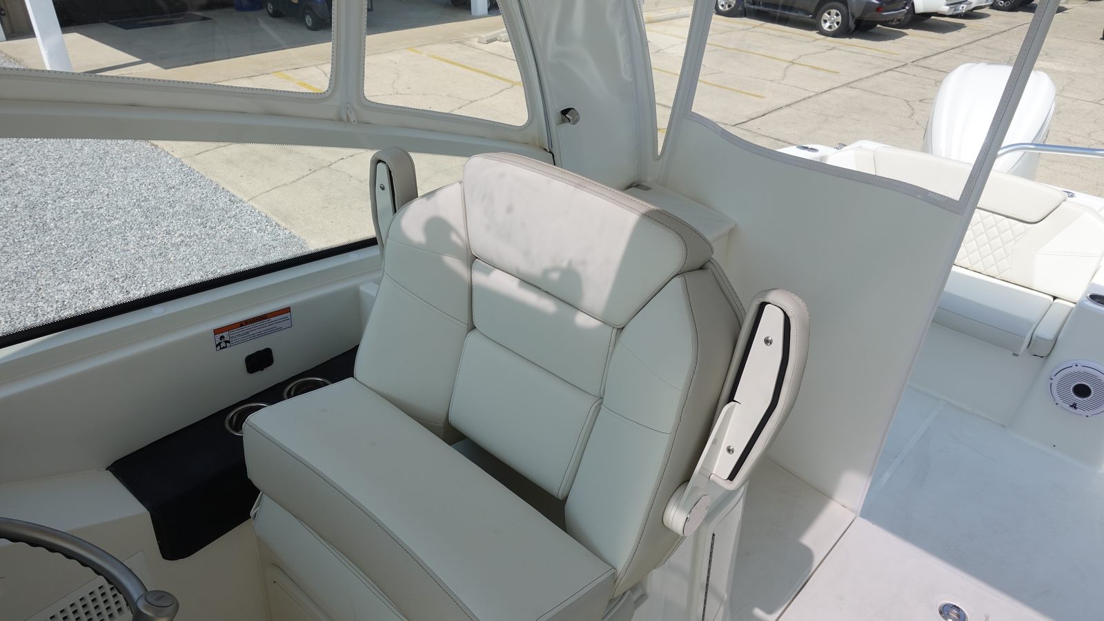 The 2025 World Cat 325 DC comes loaded with premium features that set it apart from other Dual Console boats for sale. The HardTop Underside in Shackleford Sand not only adds a touch of elegance but also provides essential shade and protection from the elements. The Edson Wheel, measuring 14.5 inches with a satin finish, power knob, and nut, offers precise control and a luxurious feel at the helm. For those who love to relax in the bow, the Forward Bow Shade in Steel Grey creates a comfortable retreat from the sun, perfect for lounging or socializing.Entertainment is elevated with the upgraded stereo system, delivering crystal-clear sound throughout the boat, so you can enjoy your favorite tunes while cruising or anchored at your favorite spot. The SureShade Electric retractable hardtop shade, featuring Sunbrella canvas in cadet grey, extends at the touch of a button, offering additional protection and comfort for guests in the cockpit area. The 325DC Port Back to Back Seating provides versatile seating arrangements, allowing you to customize the space for relaxation, conversation, or fishing.For those who enjoy overnight adventures, the Overnight package includes a Fisher Panda 6kw Diesel generator, ensuring you have reliable power for all your onboard needs. The high-grade curtain package with Strataglass sides and drop curtain offers superior weather protection, allowing you to extend your boating season and stay comfortable in changing conditions. Every detail, from the stylish bootstripe to the premium hull finish, reflects World Cat’s commitment to quality and innovation.
