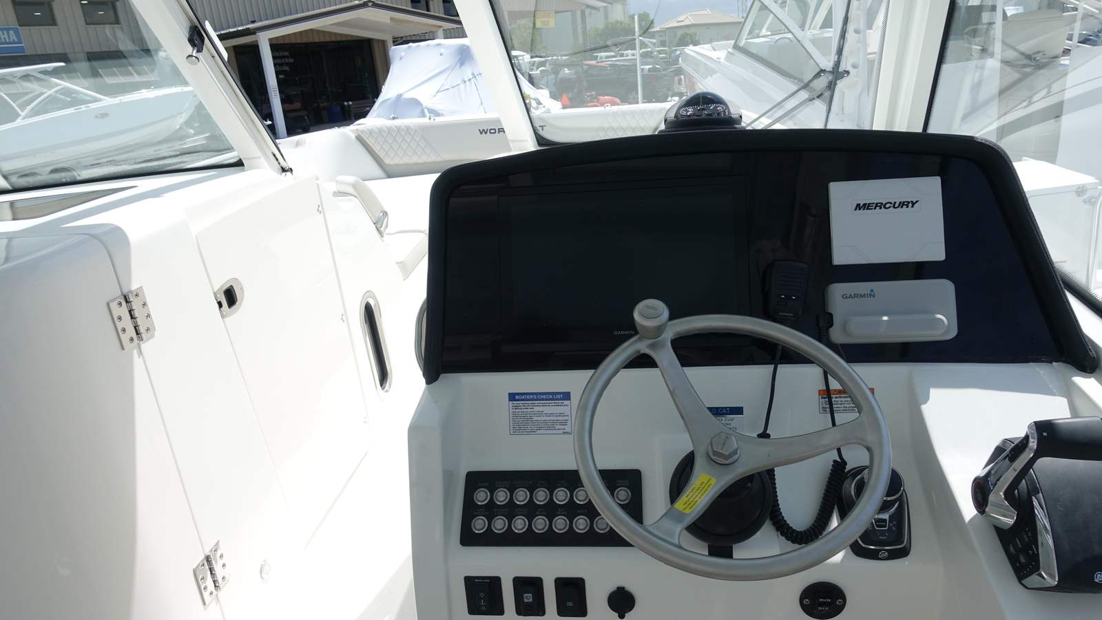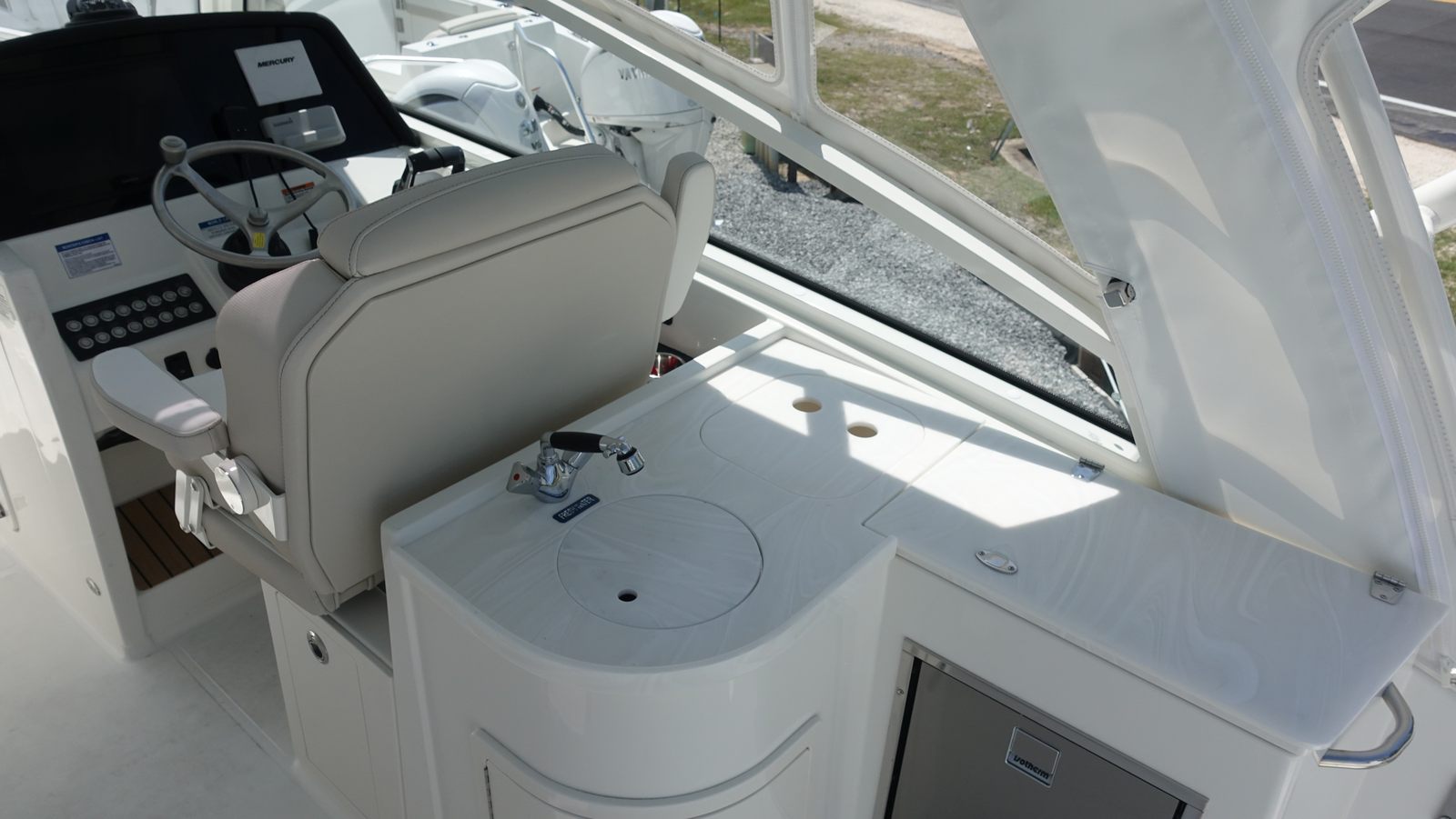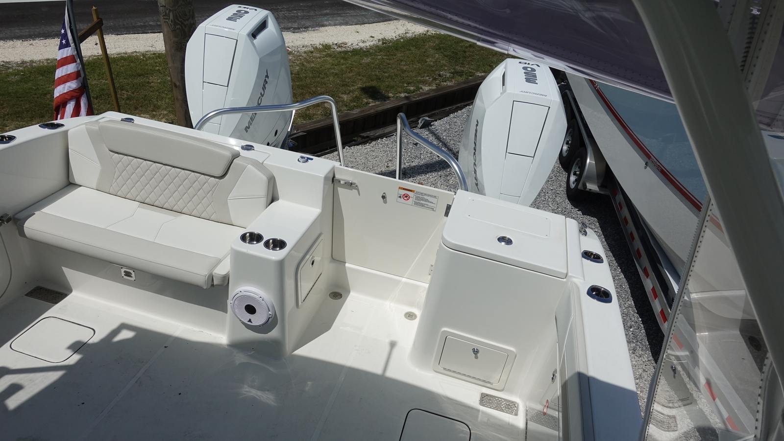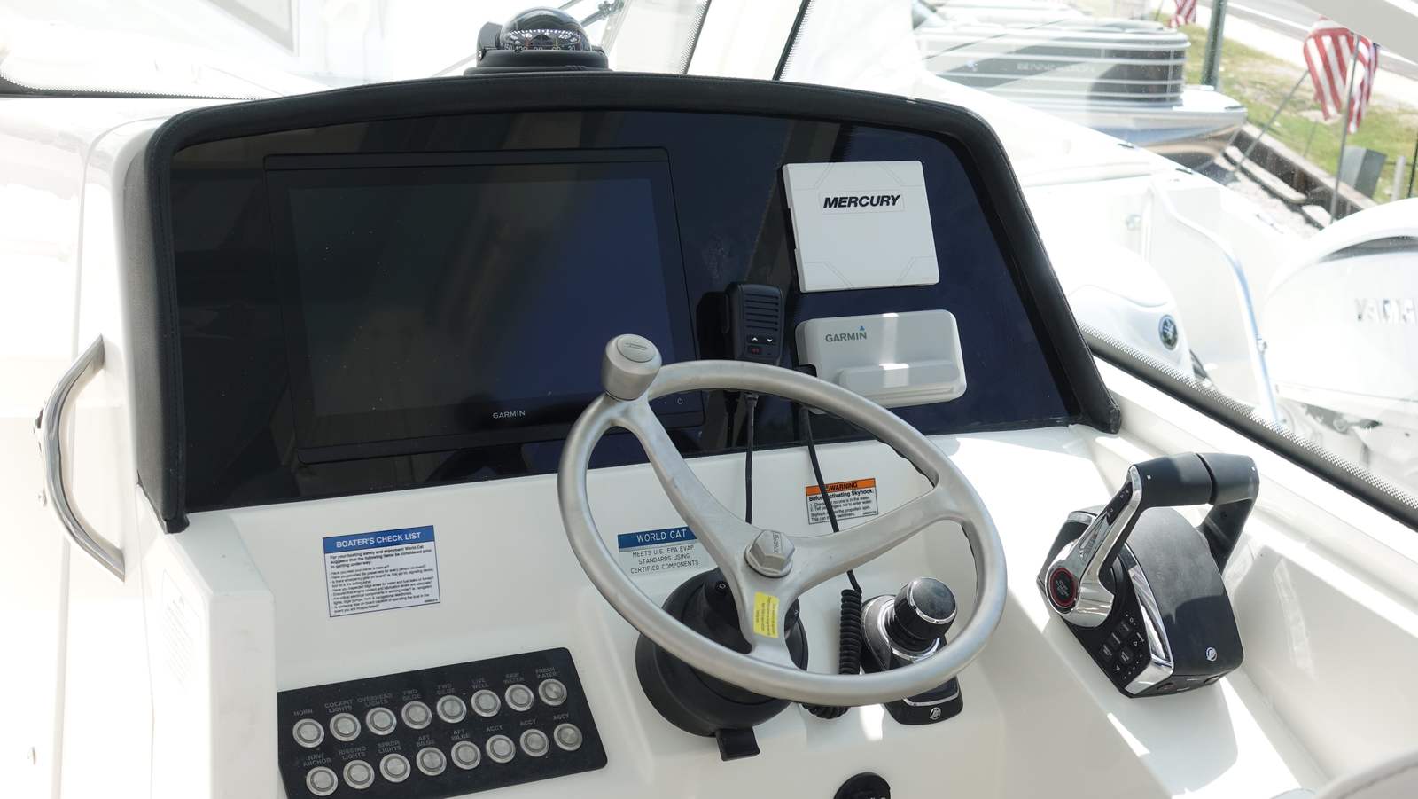 - Engines with Gen2 Controls, Vessel View 5" Display, Mercury JPO Electric Steering w/Joystick and Auto-Pilot