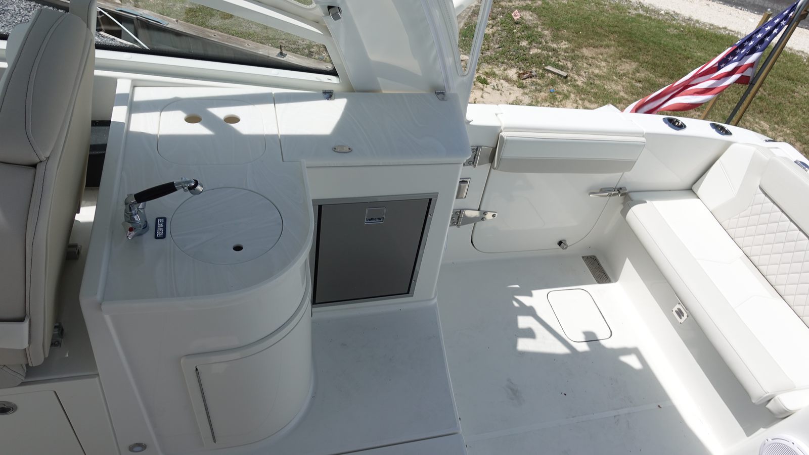 The World Cat 325 DC is designed with practicality in mind, making ownership easy and enjoyable. The Mercury JPO electric steering with joystick and auto-pilot simplifies docking and close-quarters maneuvering, reducing stress and allowing you to focus on enjoying your time on the water. The Vessel View display keeps you informed about engine performance, helping you maintain efficiency and reliability. The spacious layout offers plenty of storage for gear, supplies, and personal items, ensuring you’re always prepared for any adventure.The Fisher Panda generator provides dependable power for overnight stays, so you can enjoy extended trips without sacrificing comfort. The GARMIN navigation system and VHF radio enhance safety and convenience, making it easy to plan routes, communicate with other boaters, and stay informed about changing conditions. The durable, stylish hull finish protects your investment and maintains a stunning appearance season after season.
