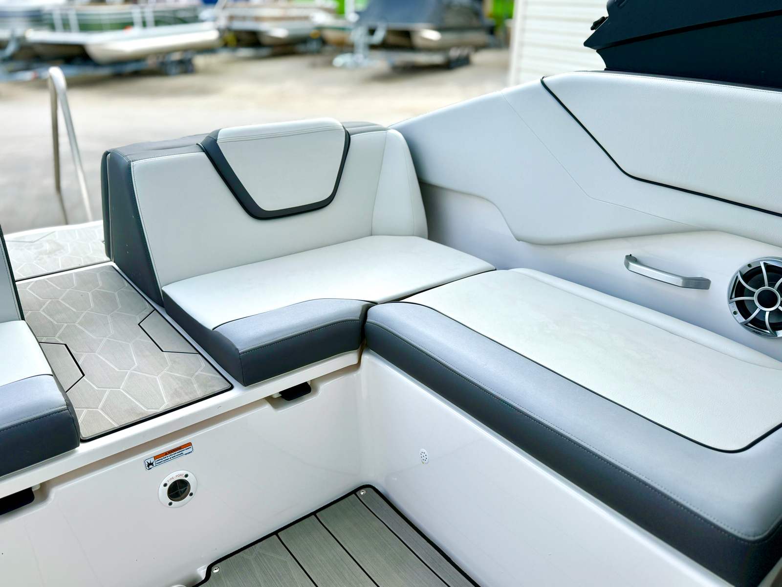 The 2022 Yamaha 252 XE is a jet boat that measures an impressive 24.5 feet in length, providing ample space for passengers and gear. As a used Yamaha boat for sale, it offers exceptional value without compromising on quality or performance. The modern lines and bold profile of the 252 XE make it a head-turner at any marina or dock, while its spacious layout ensures comfort and convenience for everyone on board. Whether you’re planning a day of watersports, a relaxing cruise, or a lively gathering with friends, this jet boat is designed to meet your every need.