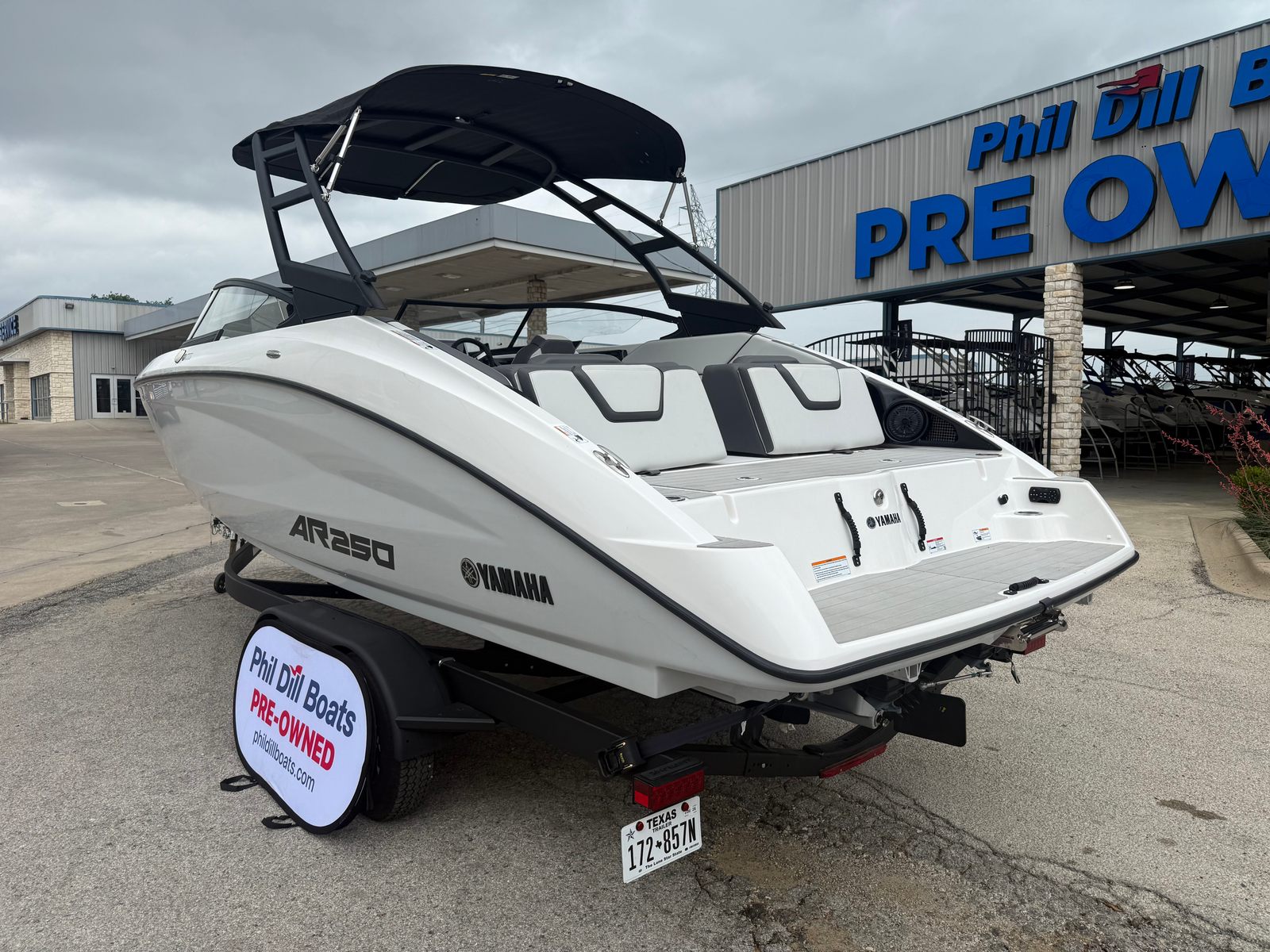 The 2025 Yamaha AR250 is a jet boat that perfectly blends performance, versatility, and style. As a used jet boat for sale, it offers exceptional value for those who want to enjoy the latest in marine innovation without the price tag of a brand-new vessel. Measuring 24.5 feet in length, this Yamaha boat for sale provides ample space for friends and family, ensuring everyone has room to relax, socialize, and enjoy the ride. The AR250’s modern design and attention to detail make it a true head-turner, whether you’re cruising the lake, exploring coastal waters, or anchoring at your favorite sandbar.
